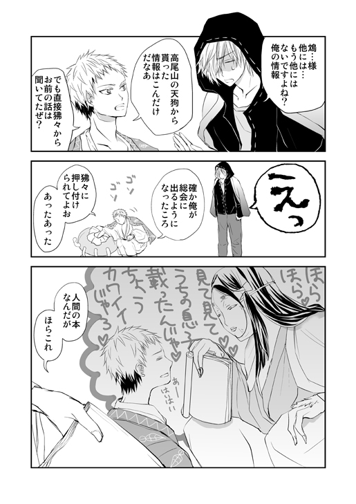 イキイキと皆さんの忘れたい過去をばらす鴆は恐ろしい存在だと思います。ていうか鴉天狗と鴆は諜報医療とか戦闘部隊ではないだけ仲がよさそうですよね。そのへんくわしく問い詰めたいです。(論点其の弐)